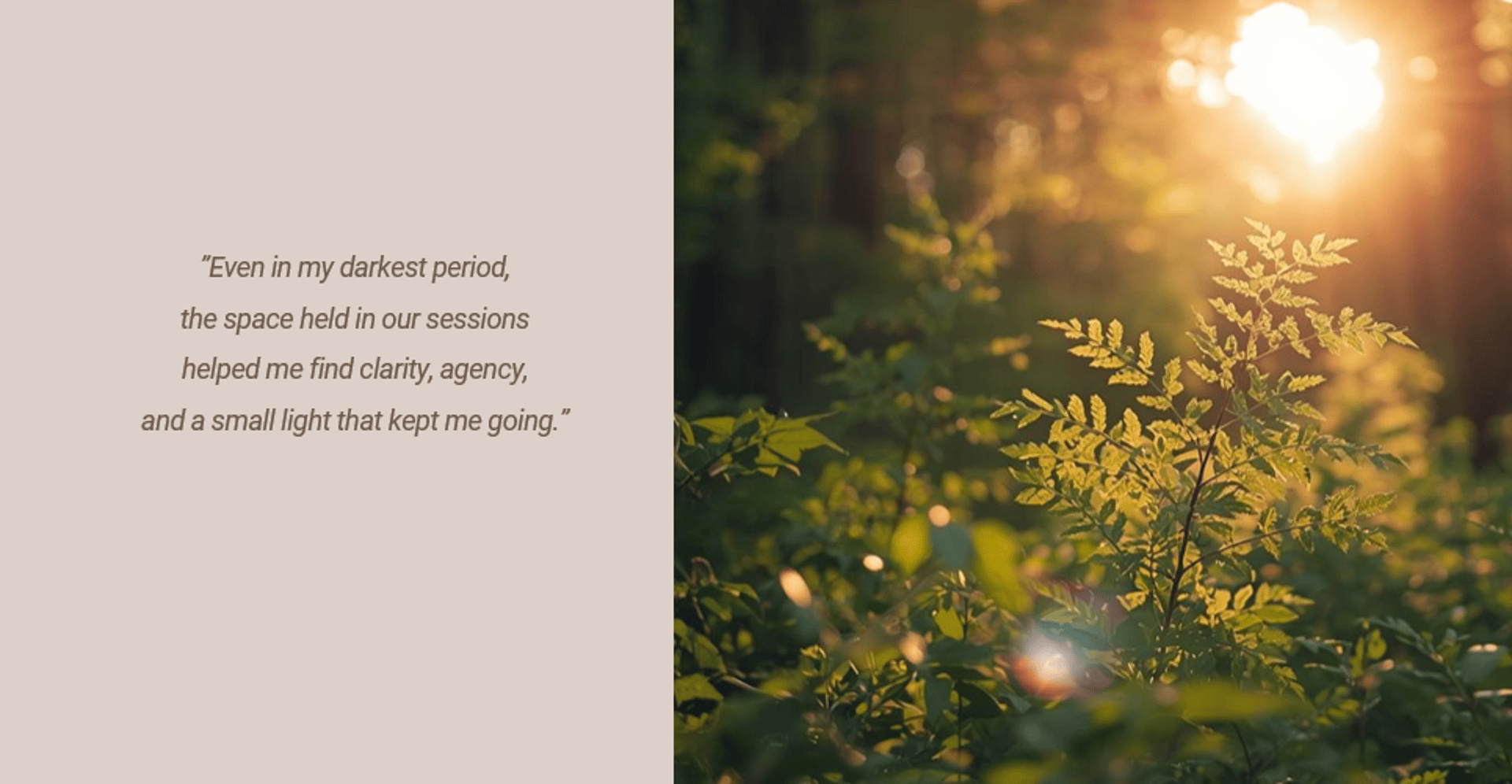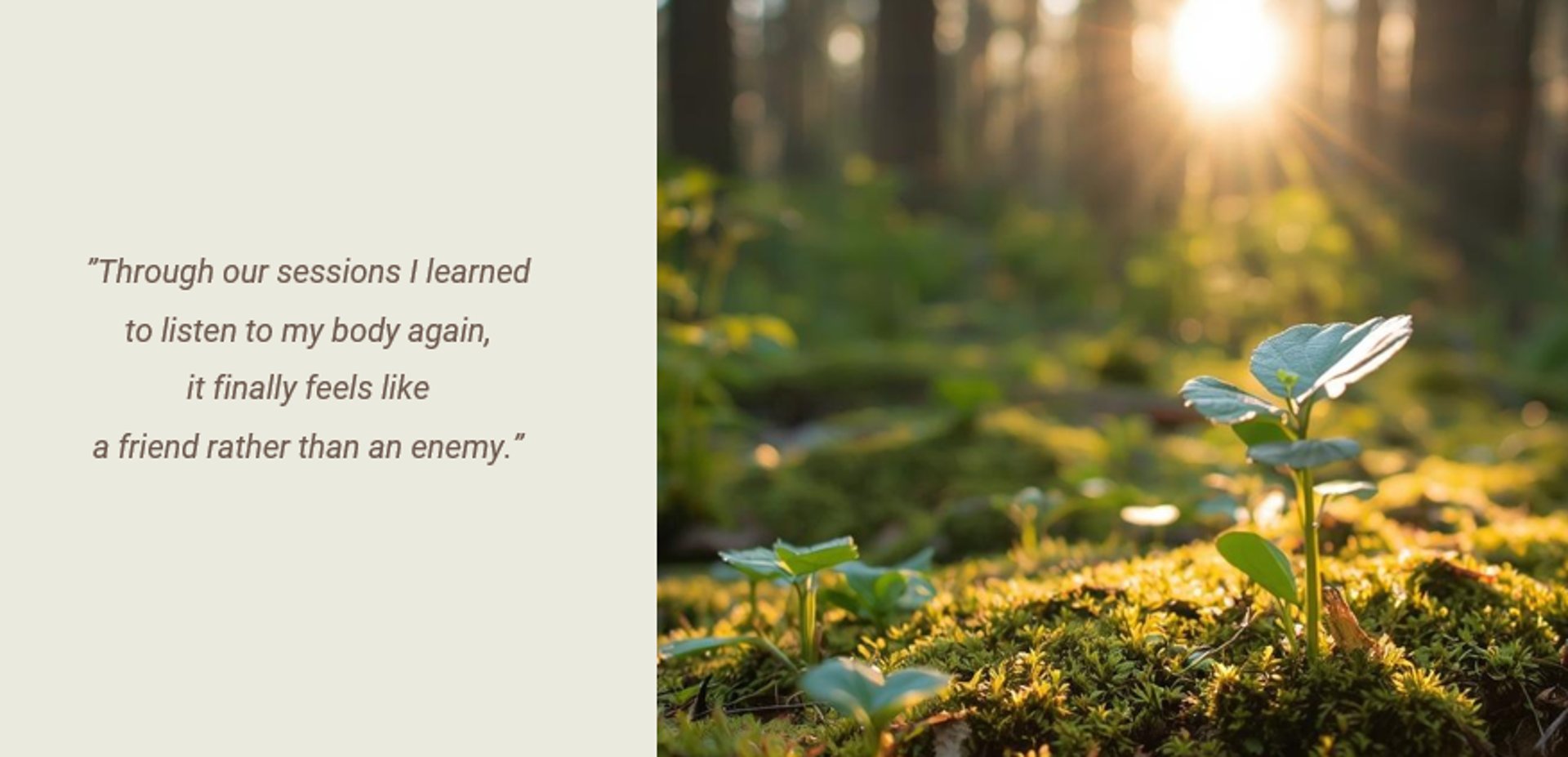 Sometimes we work with creative or embodied methods - movement, drawing, working with metaphors, or sensory awareness - always at your pace and within your comfort level.